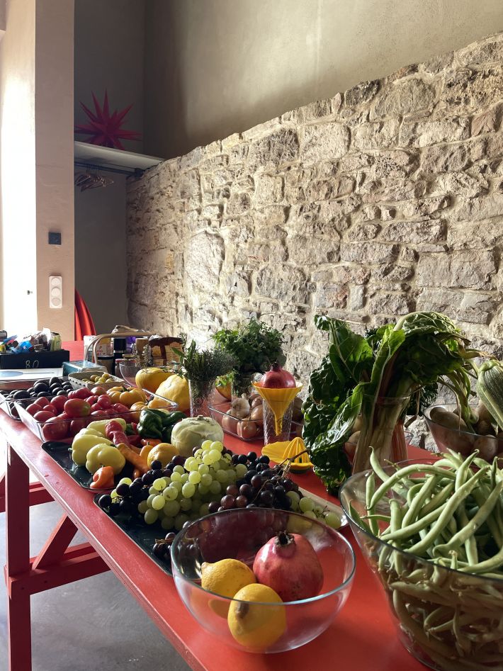 Es gibt Brot, Speck, Bier und eigenen Apfelsaft